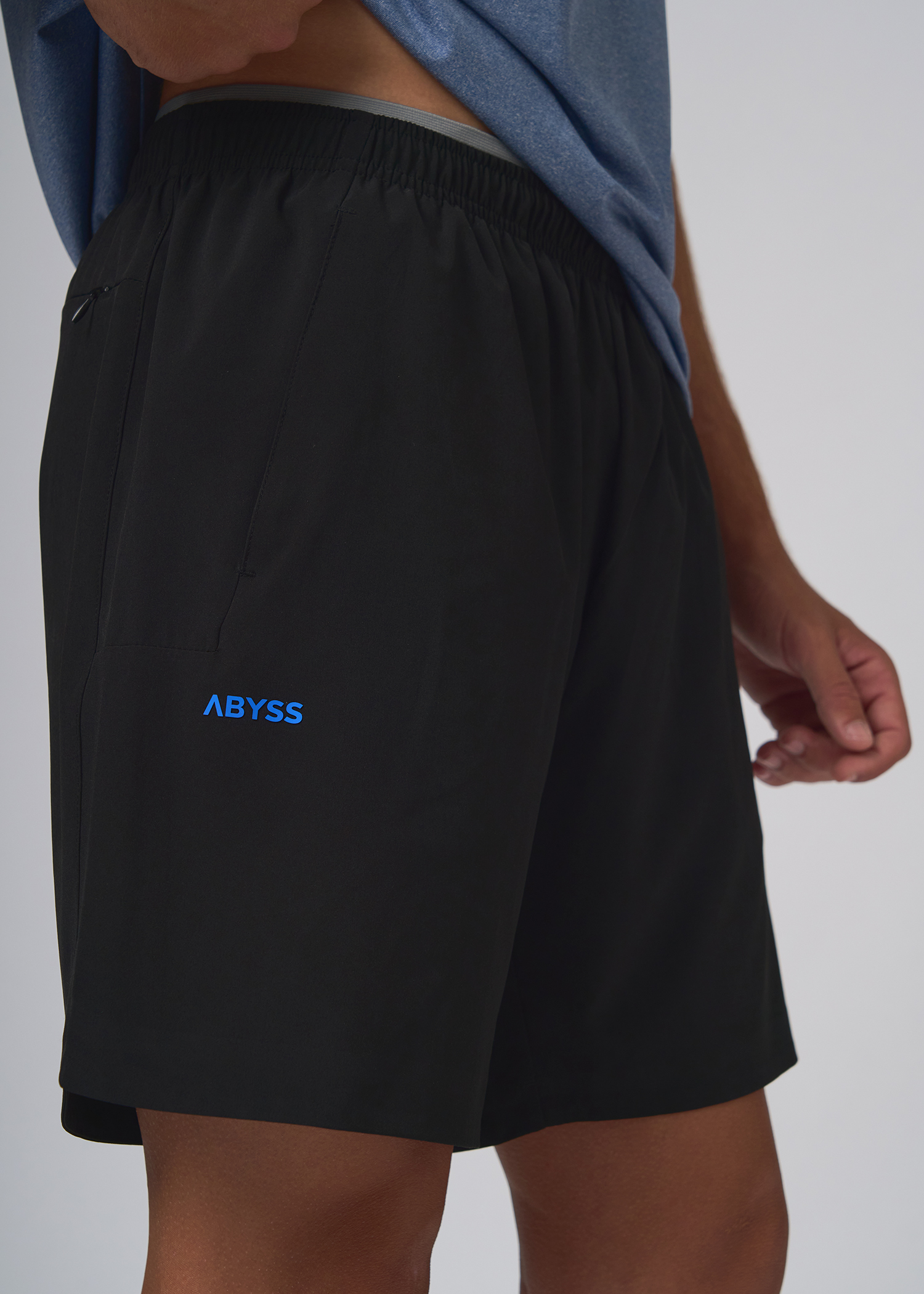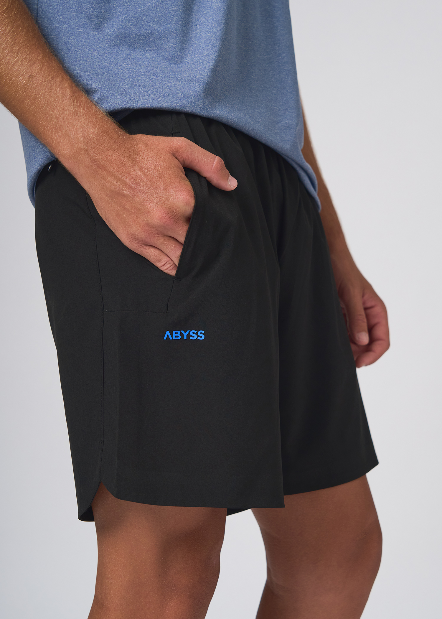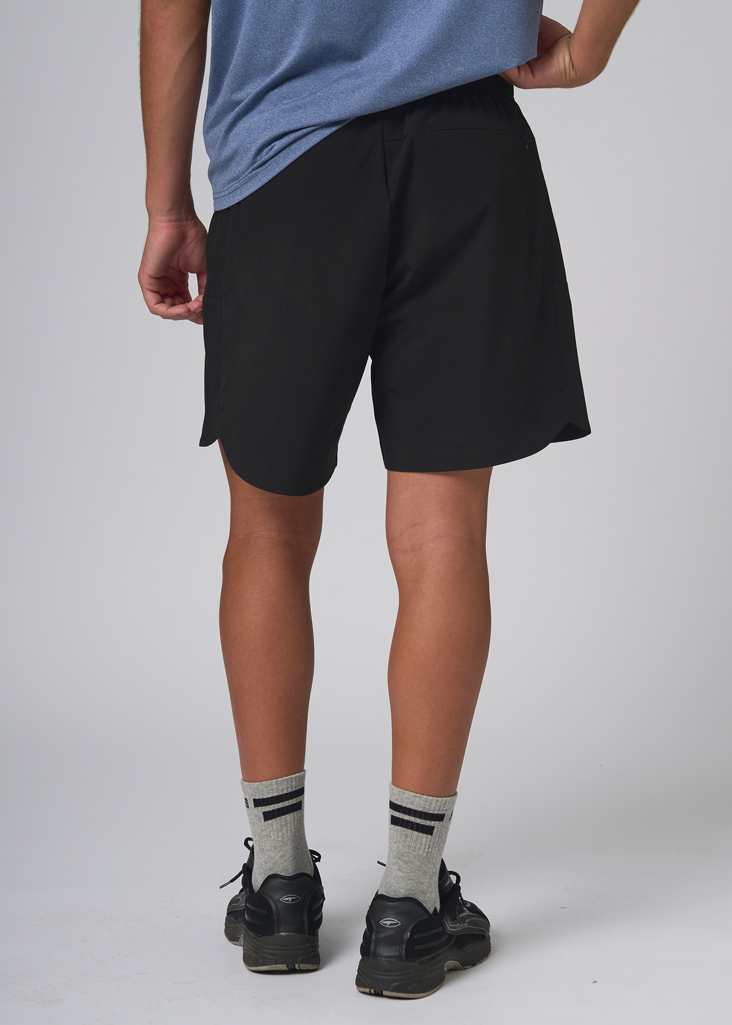 Nylon con spandex. Bermuda de tenis con elástico interno ajustable visible y cinturera externa, bolsillos taterales y trasero con cierre. Logo de marca termosellado.