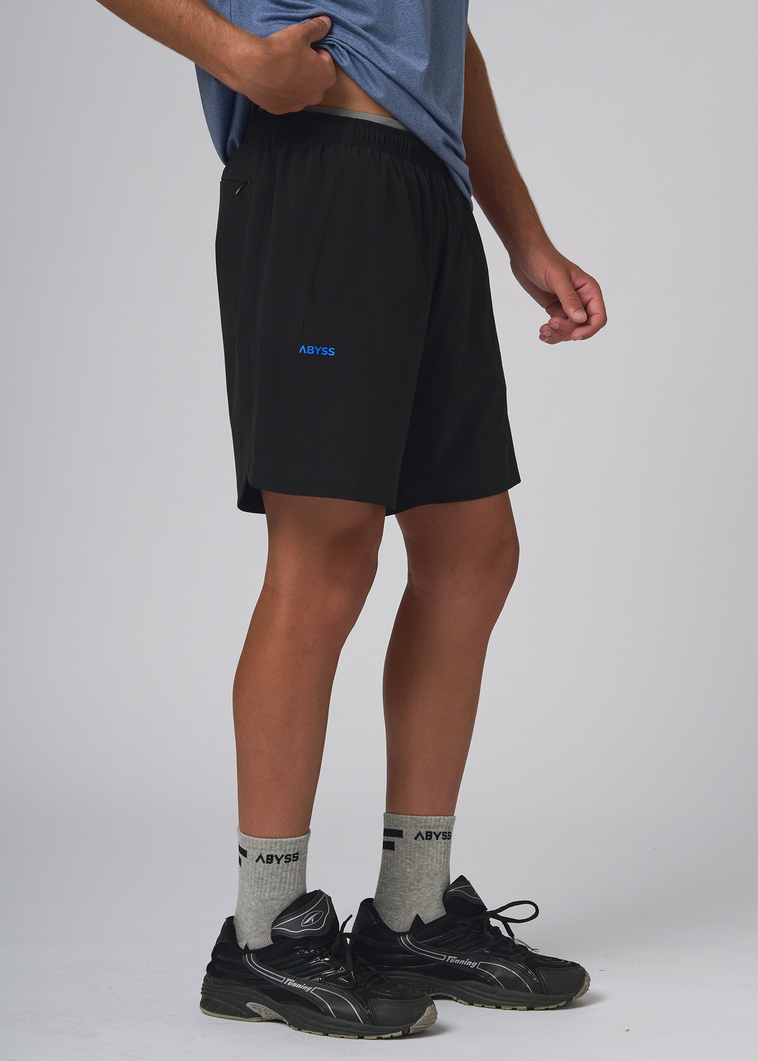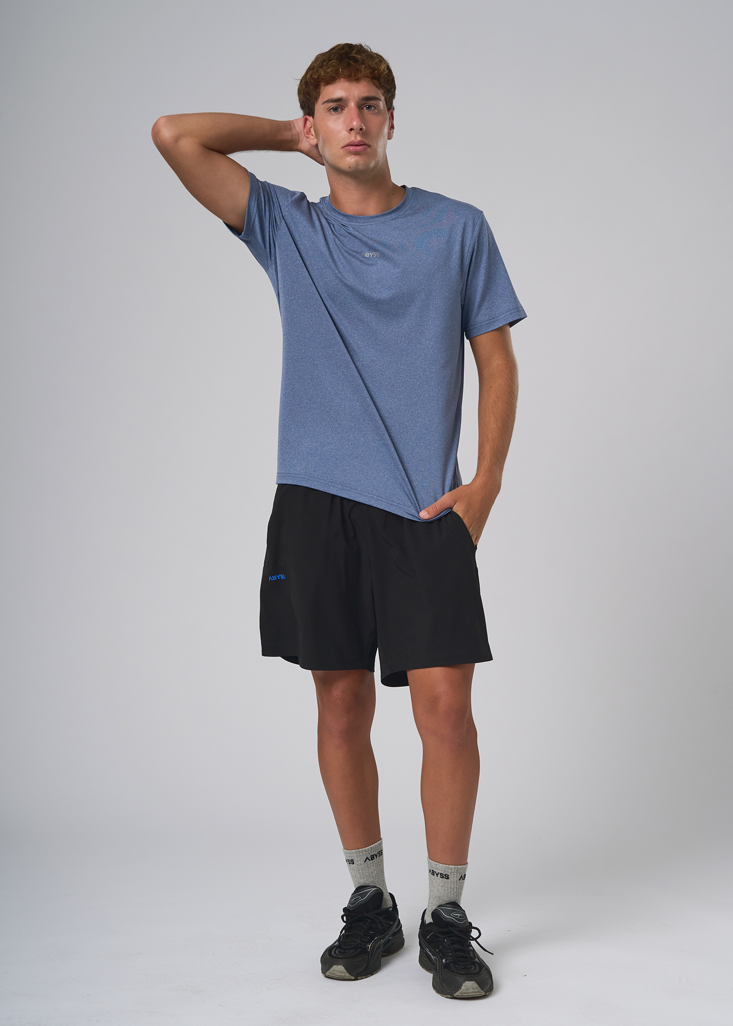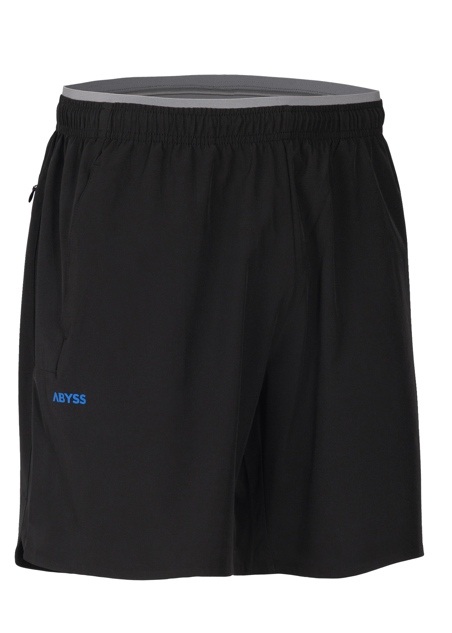 Nylon con spandex. Bermuda de tenis con elástico interno ajustable visible y cinturera externa, bolsillos taterales y trasero con cierre. Logo de marca termosellado.