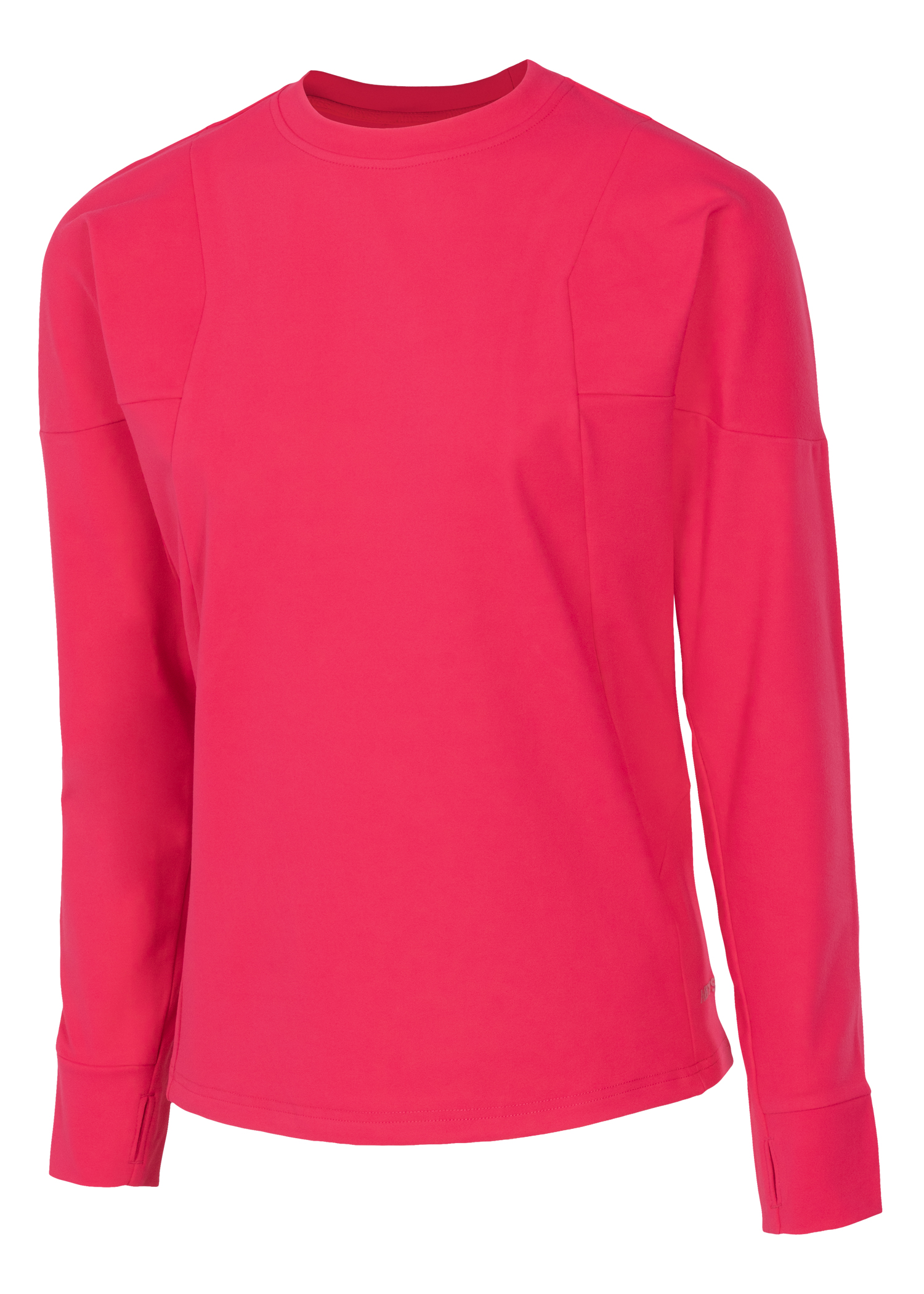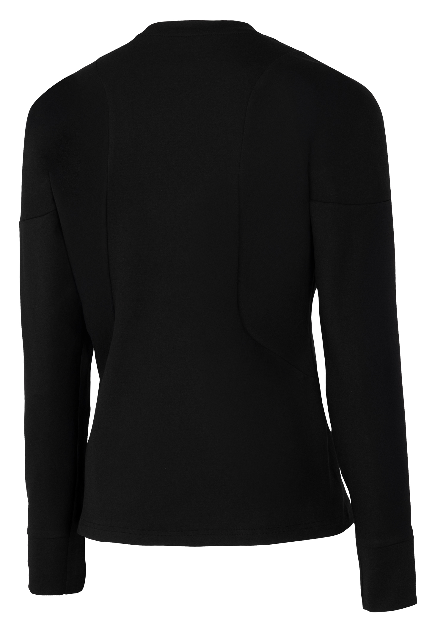 Deportivo liviano frisado. Buzo cuello redondo con recortes envolventes al tono, detalle en puños con abertura. Logos de marca termosellados
