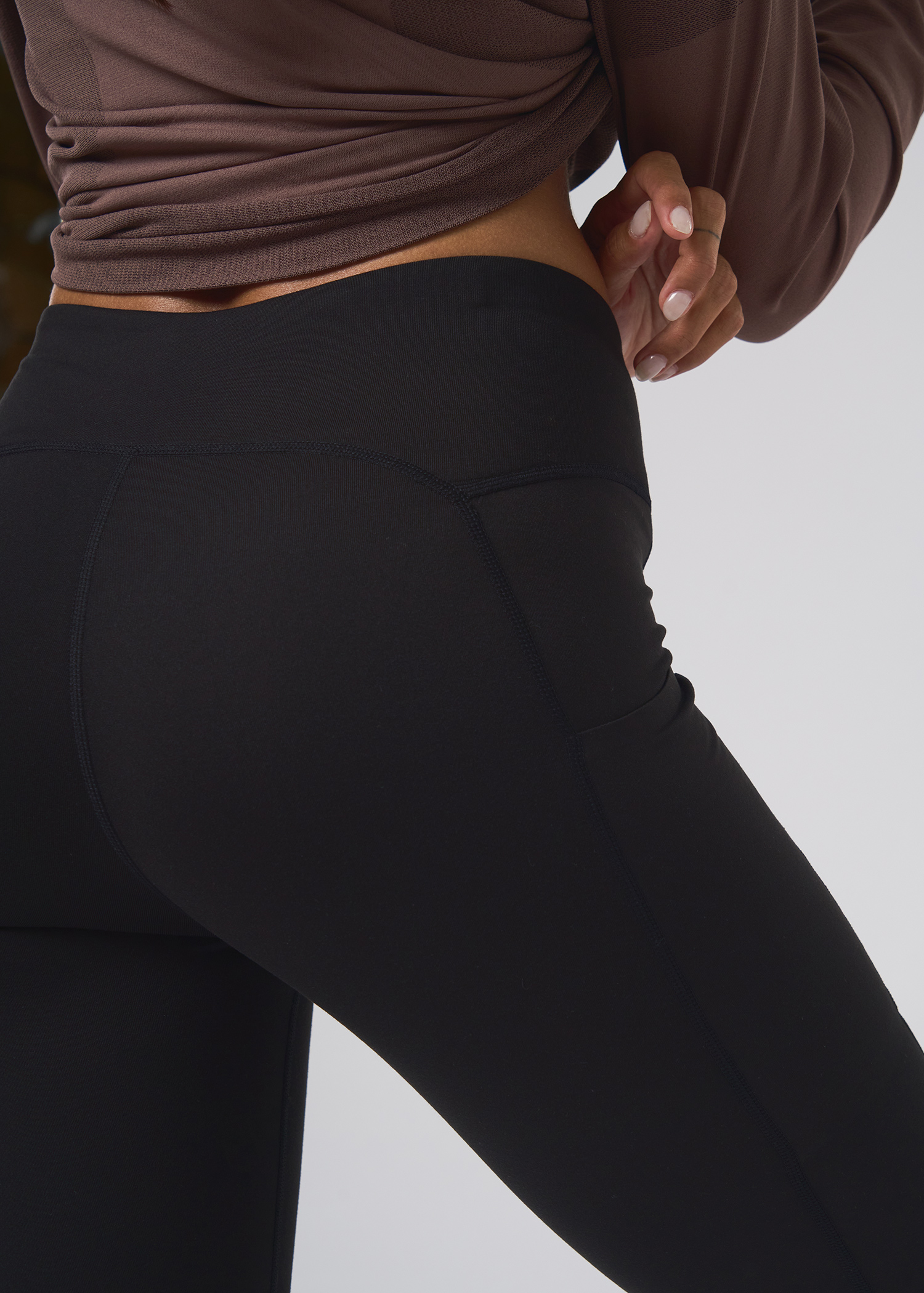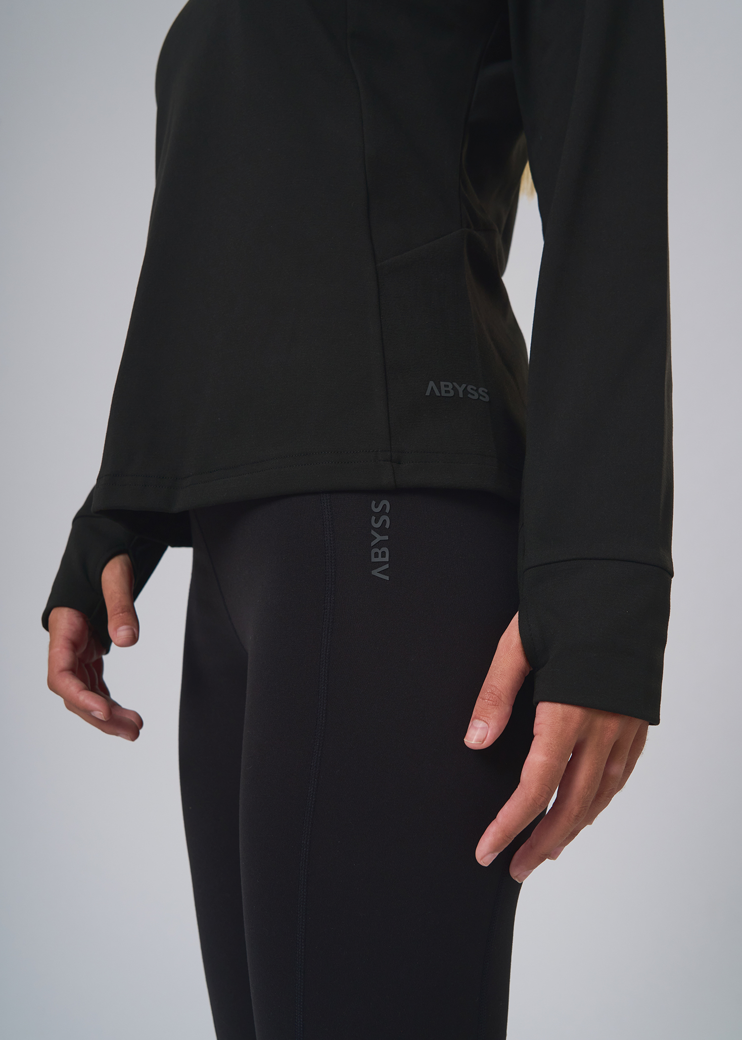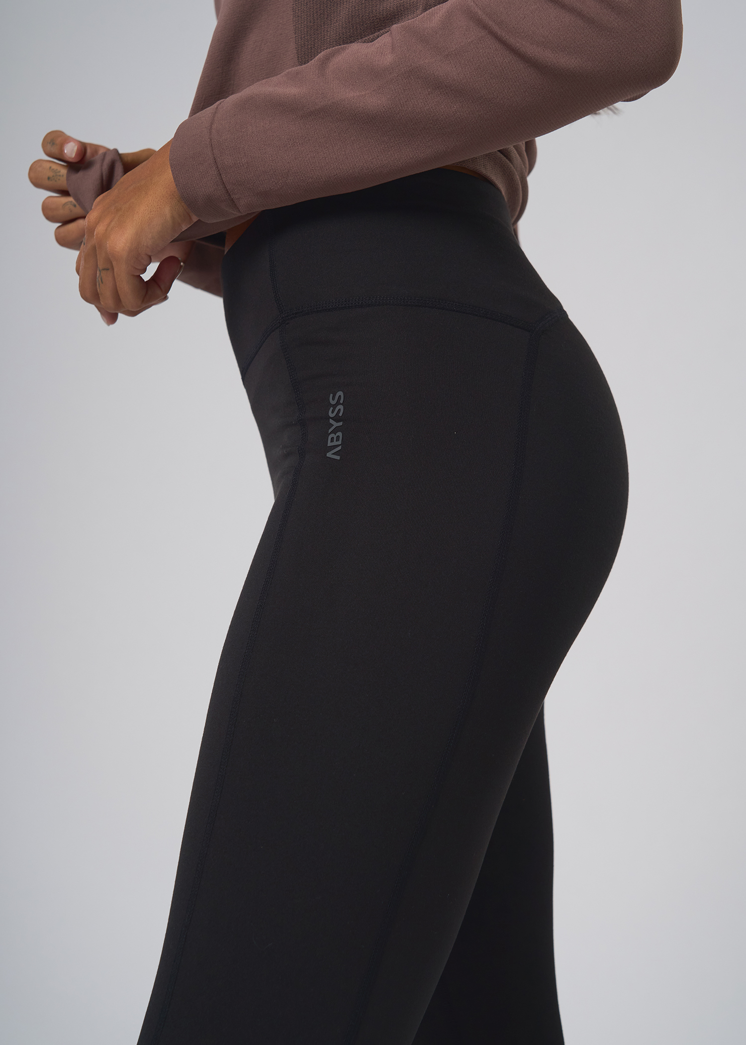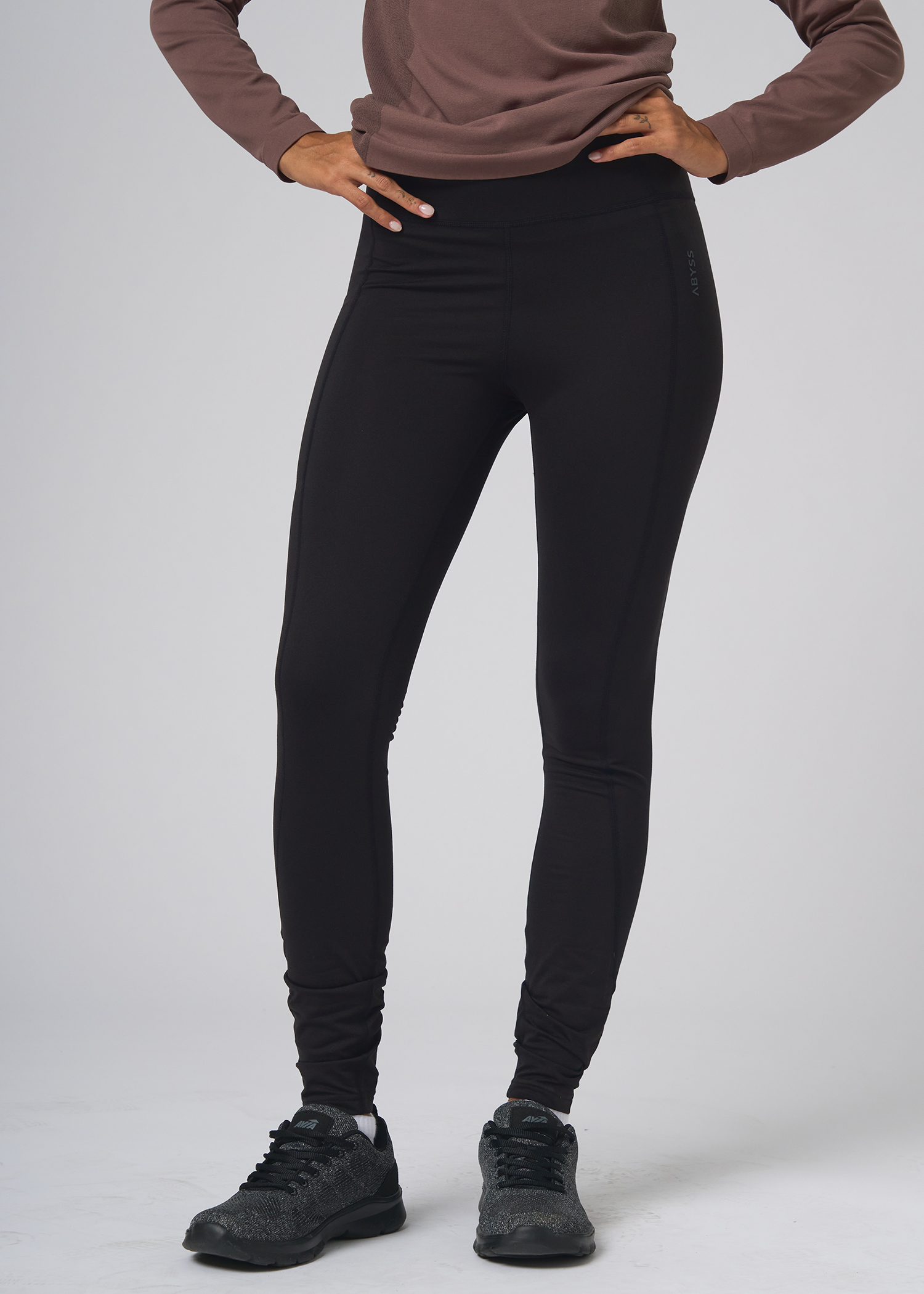 Poliester con spandex. Calza larga termica con bolsillo asimetrico lateral con cierre. Logos de marca termosellados.
