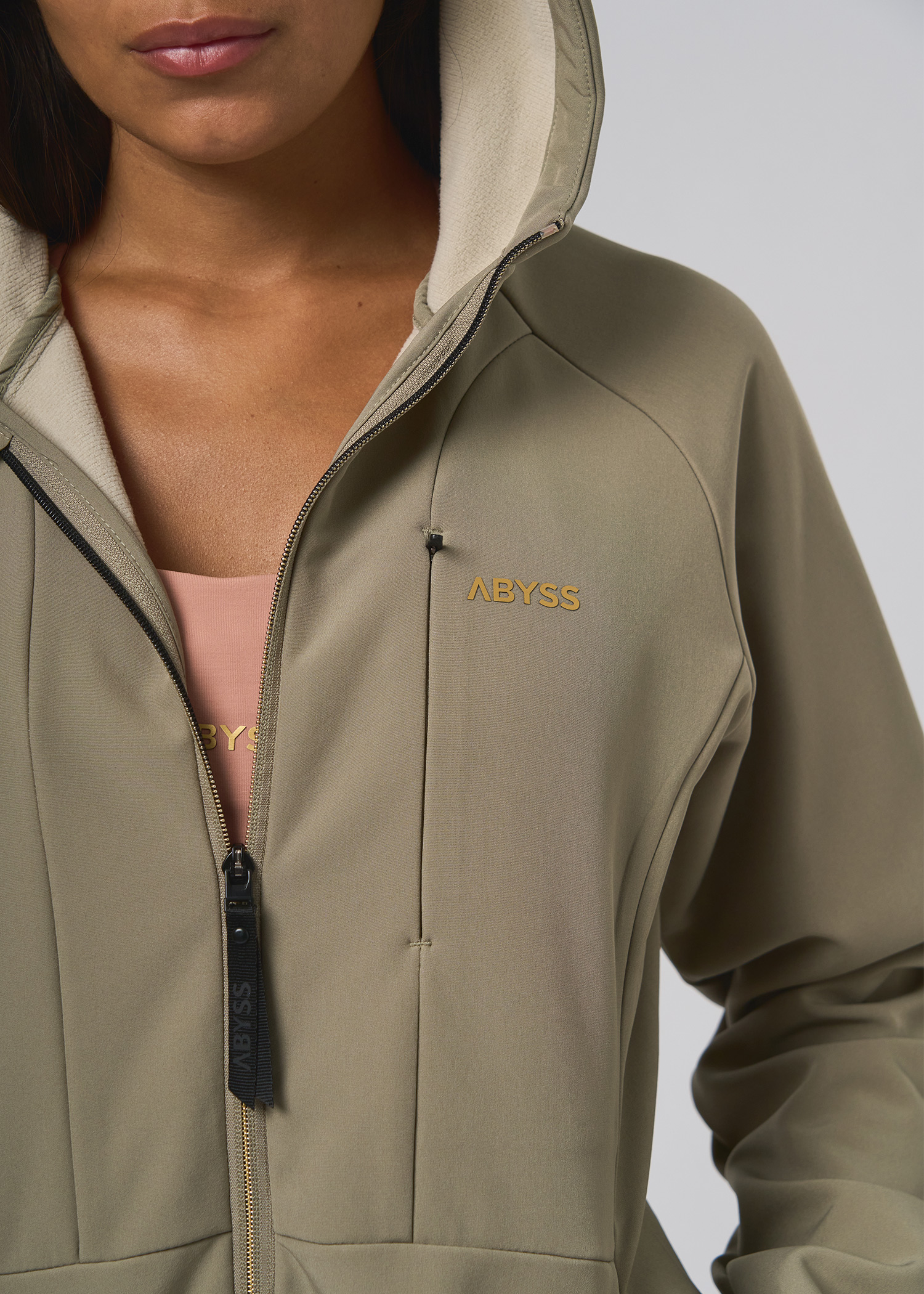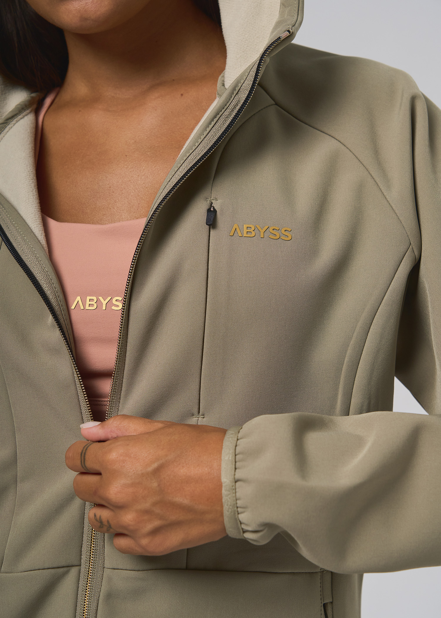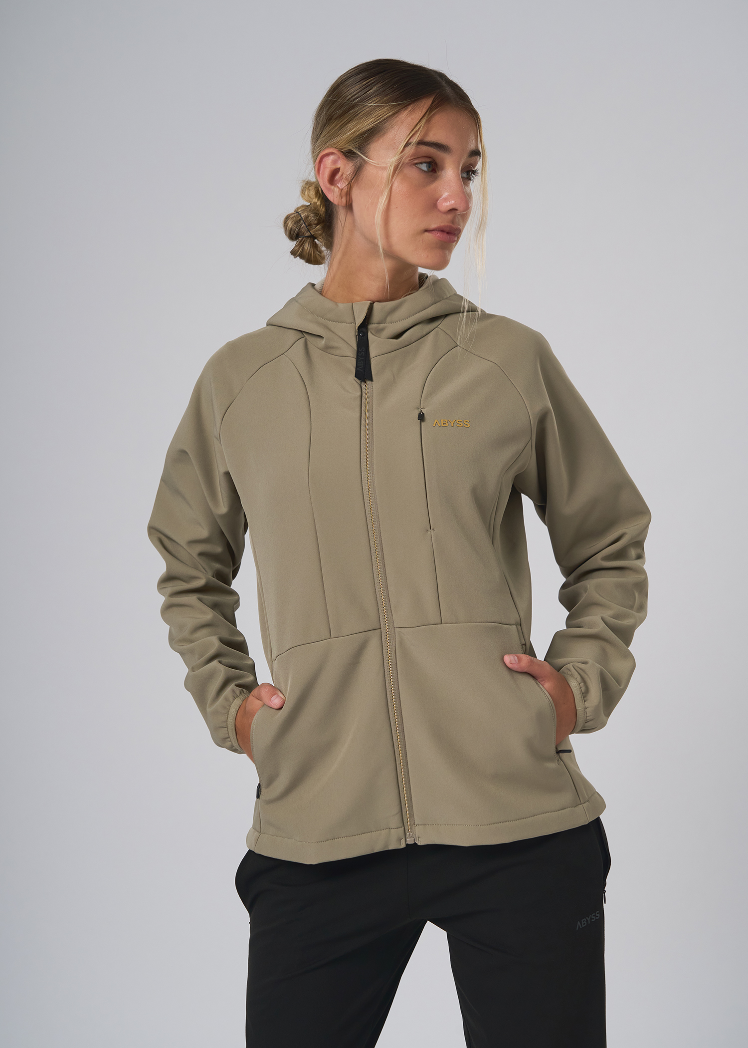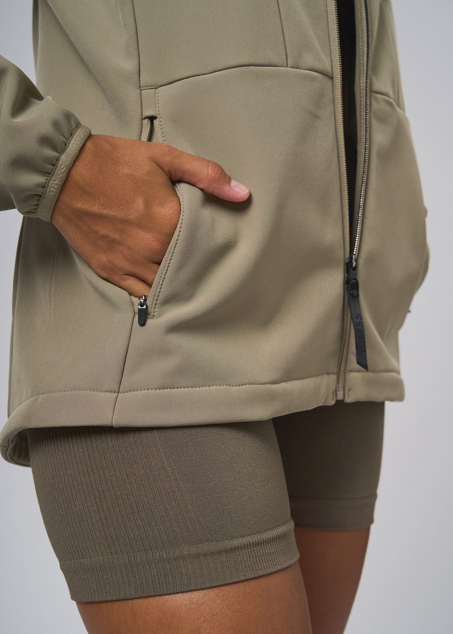 Softshell. Campera impermeable con capucha. Logo y cierre central con detalle a contra tono. Bolsillo superior y laterales con cierre. Tira cierre ancho termosellados con reflex
