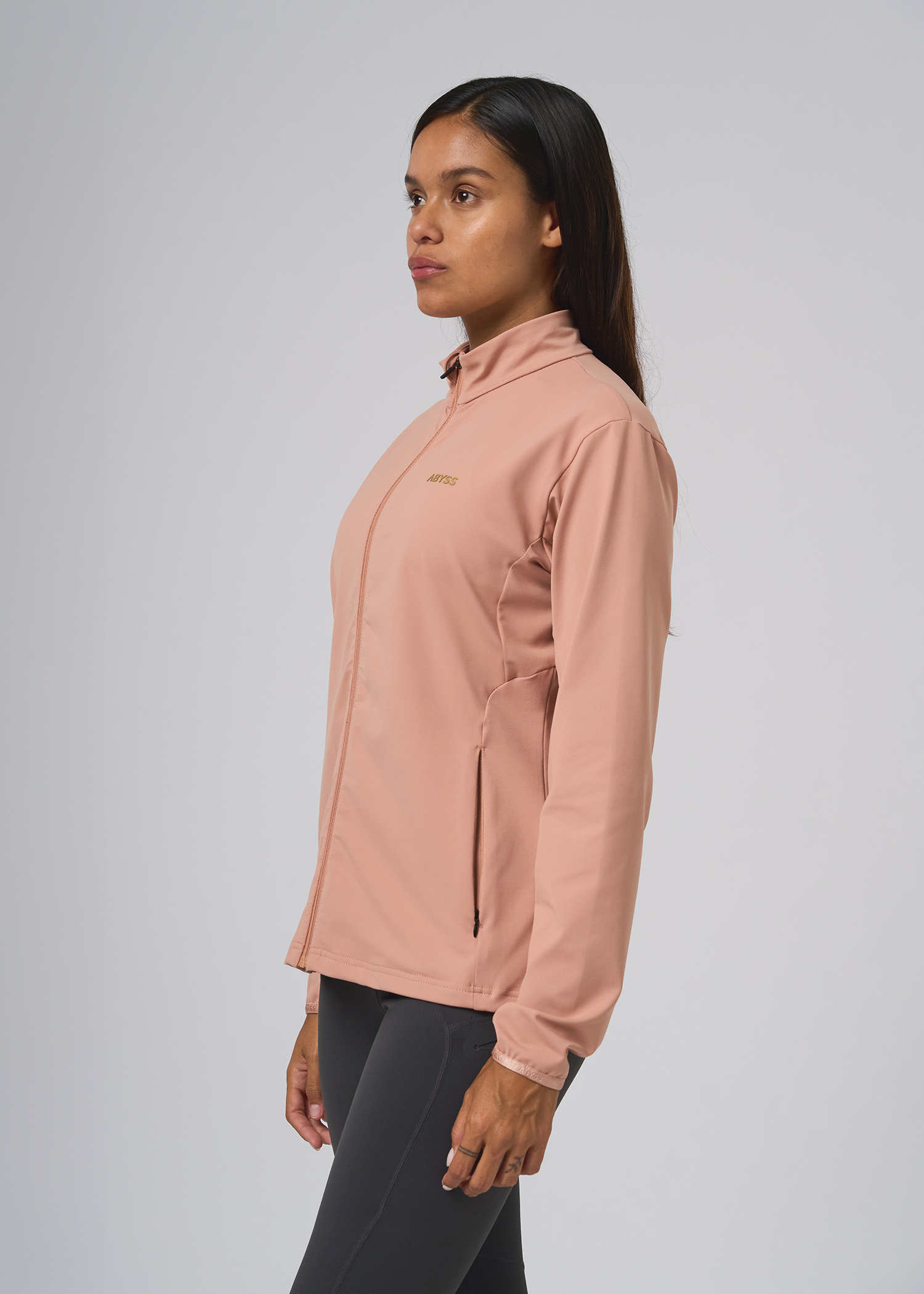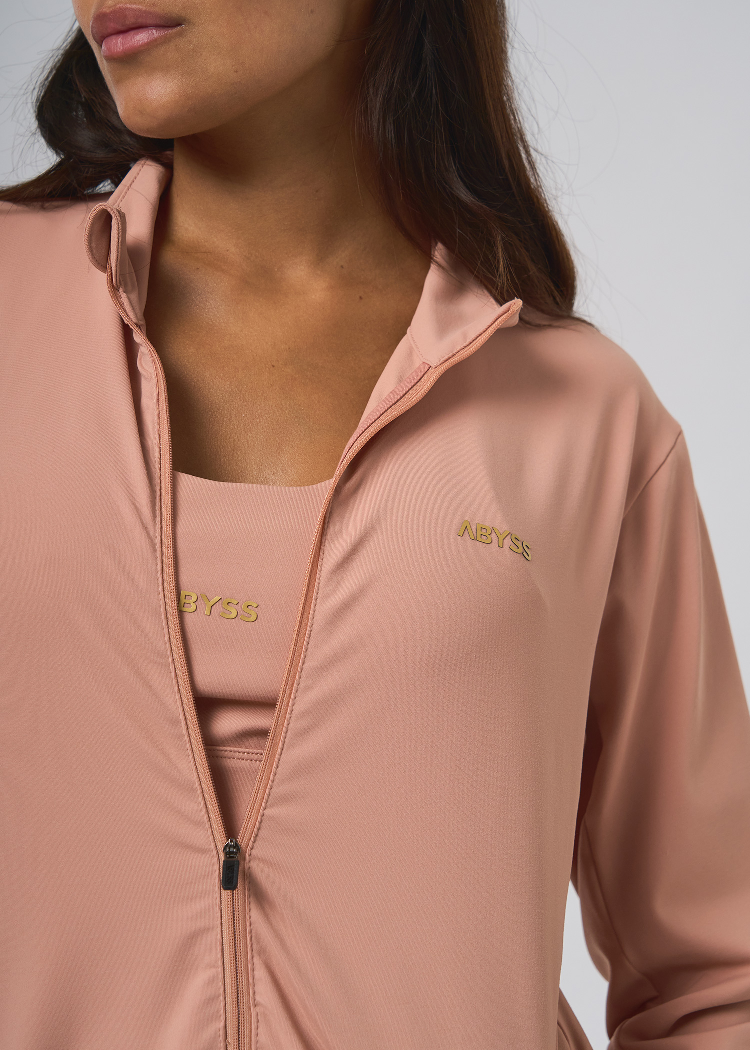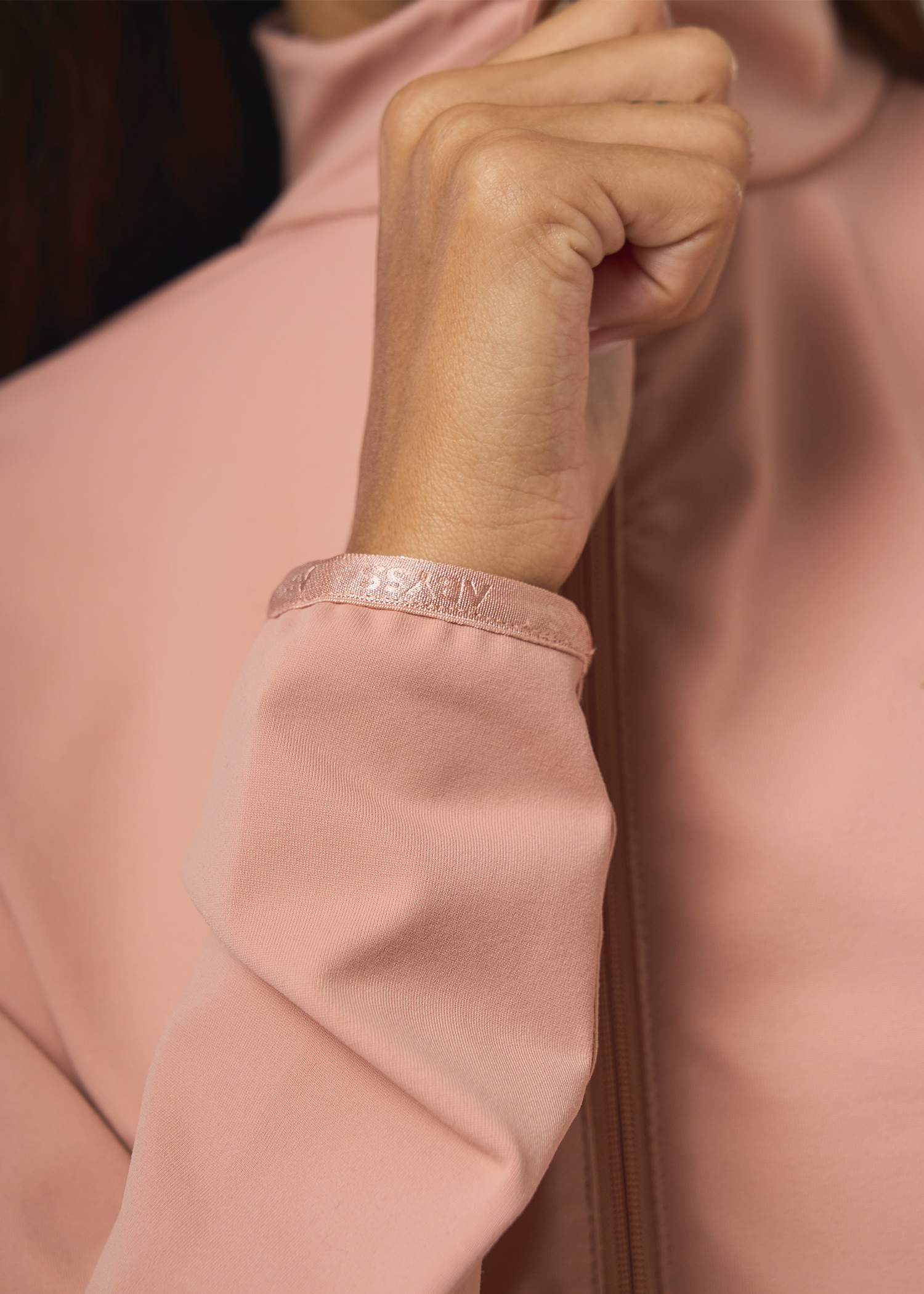 Supplex. Campera con bolsillos desde el recorte con cierres, recortes al tono. Logos dorados termosellados.