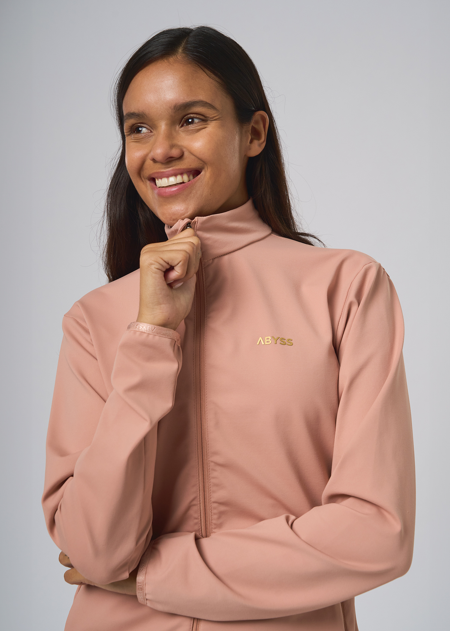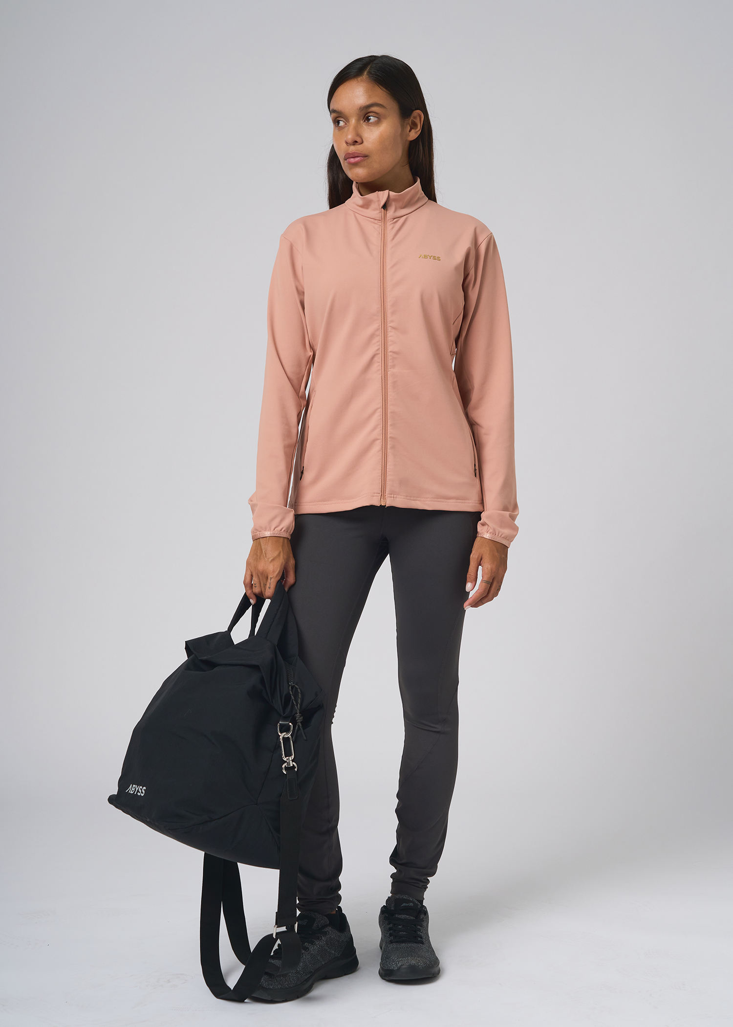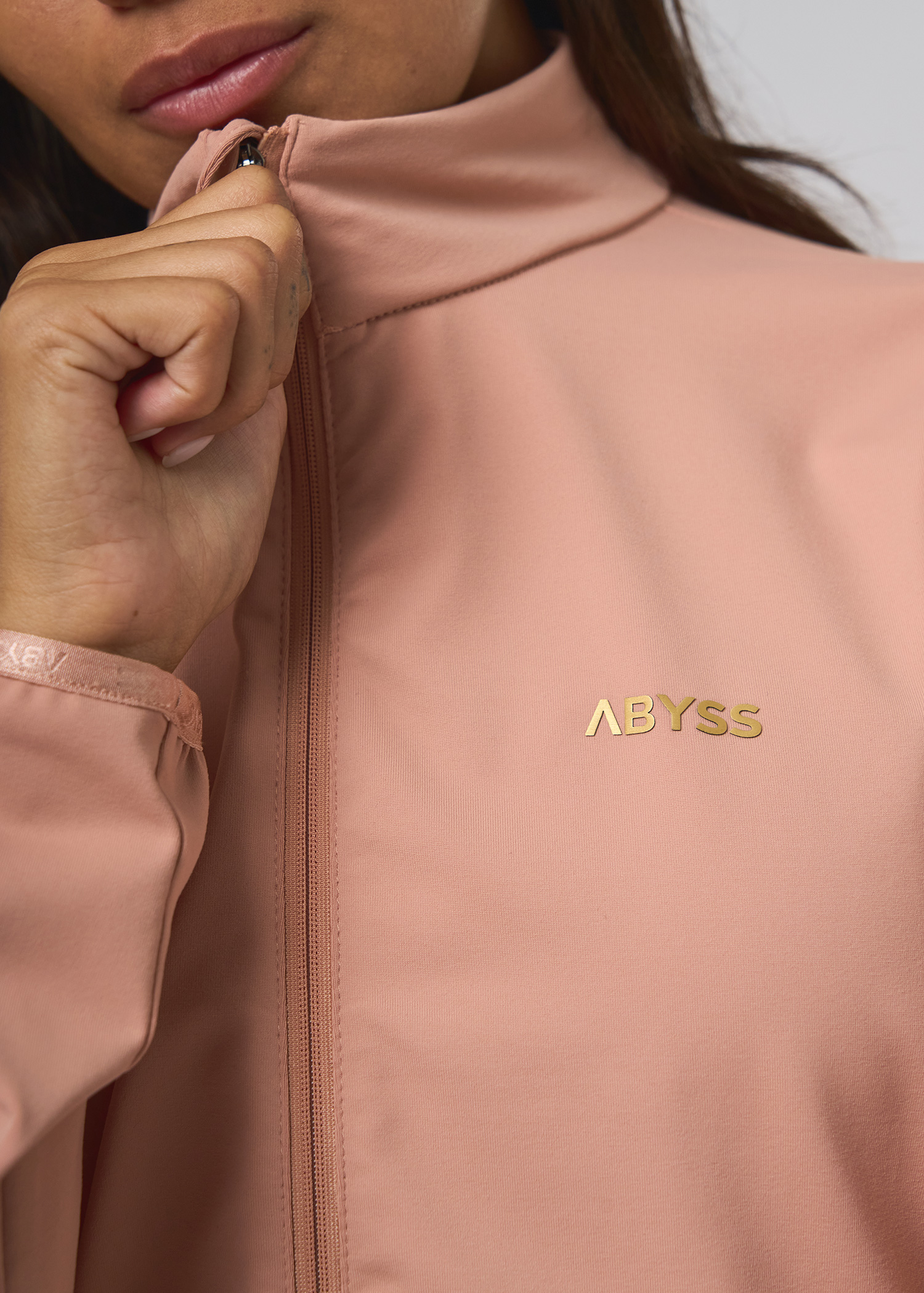 Supplex. Campera con bolsillos desde el recorte con cierres, recortes al tono. Logos dorados termosellados.