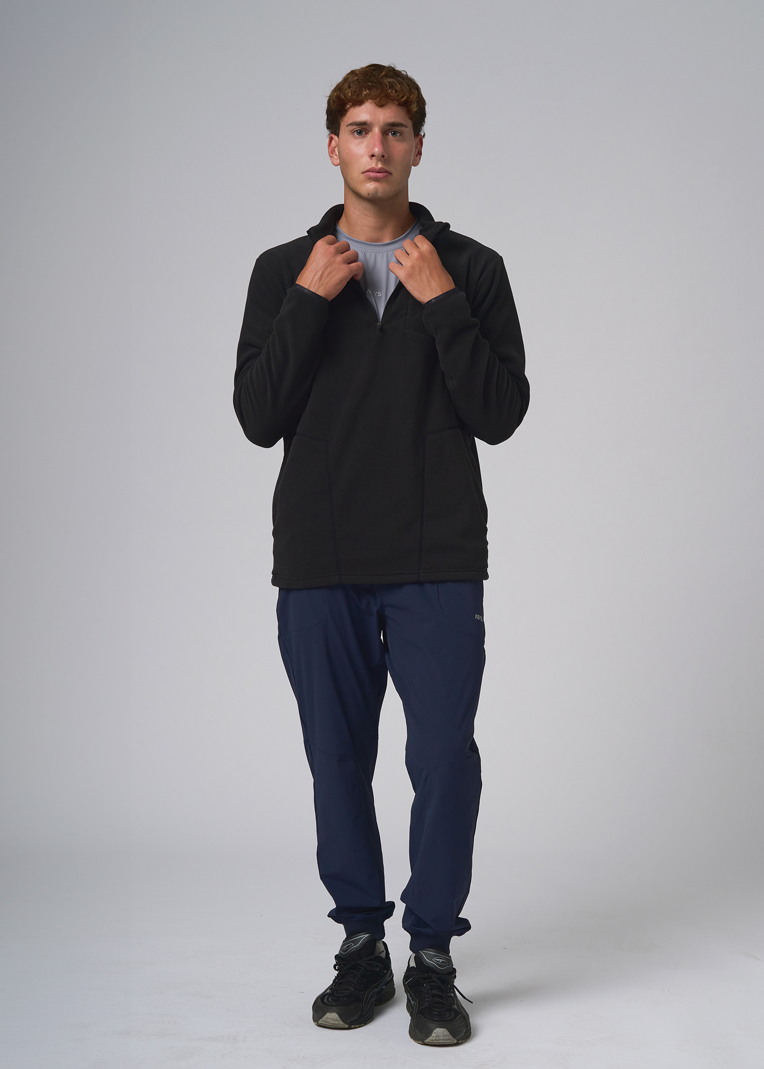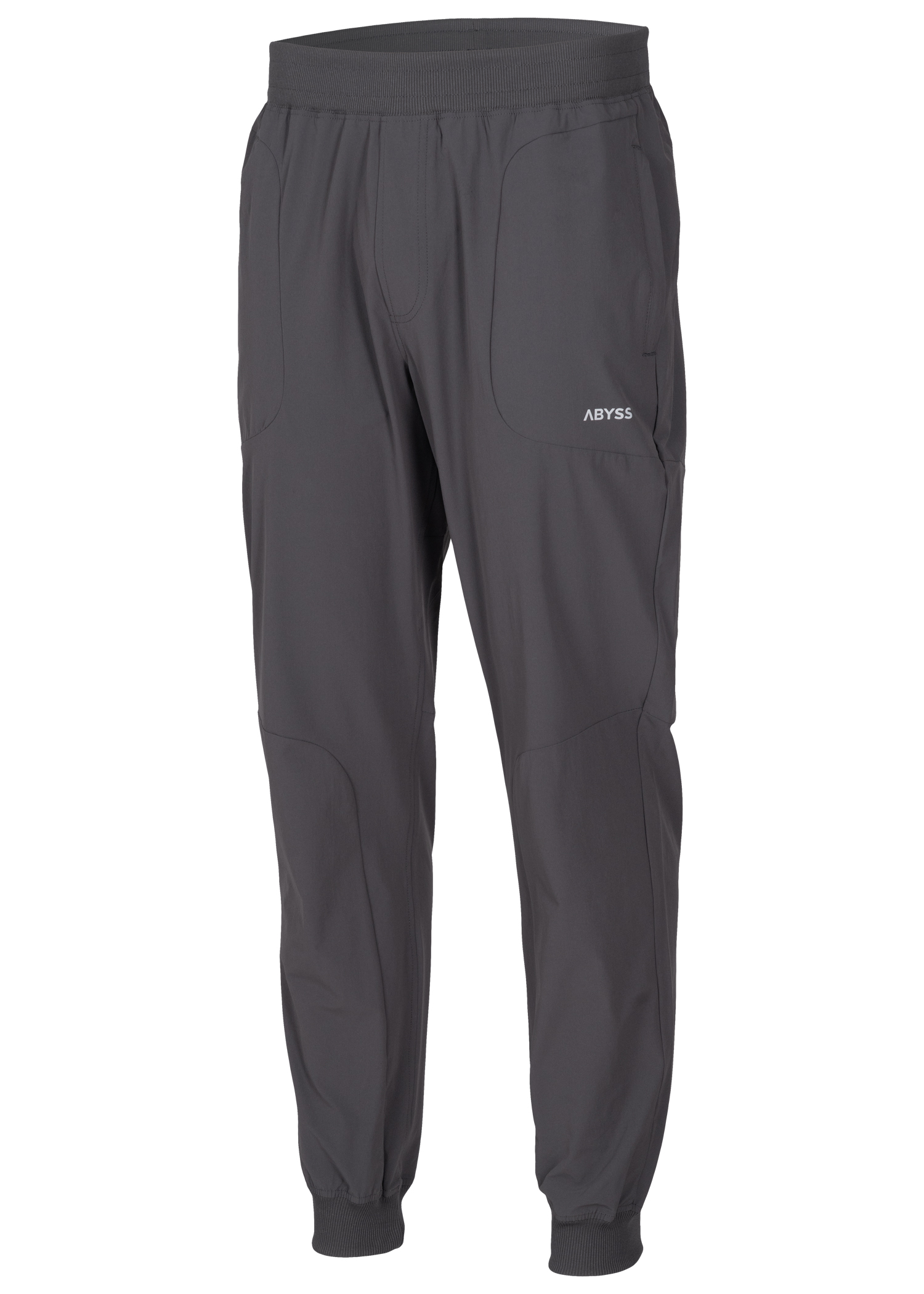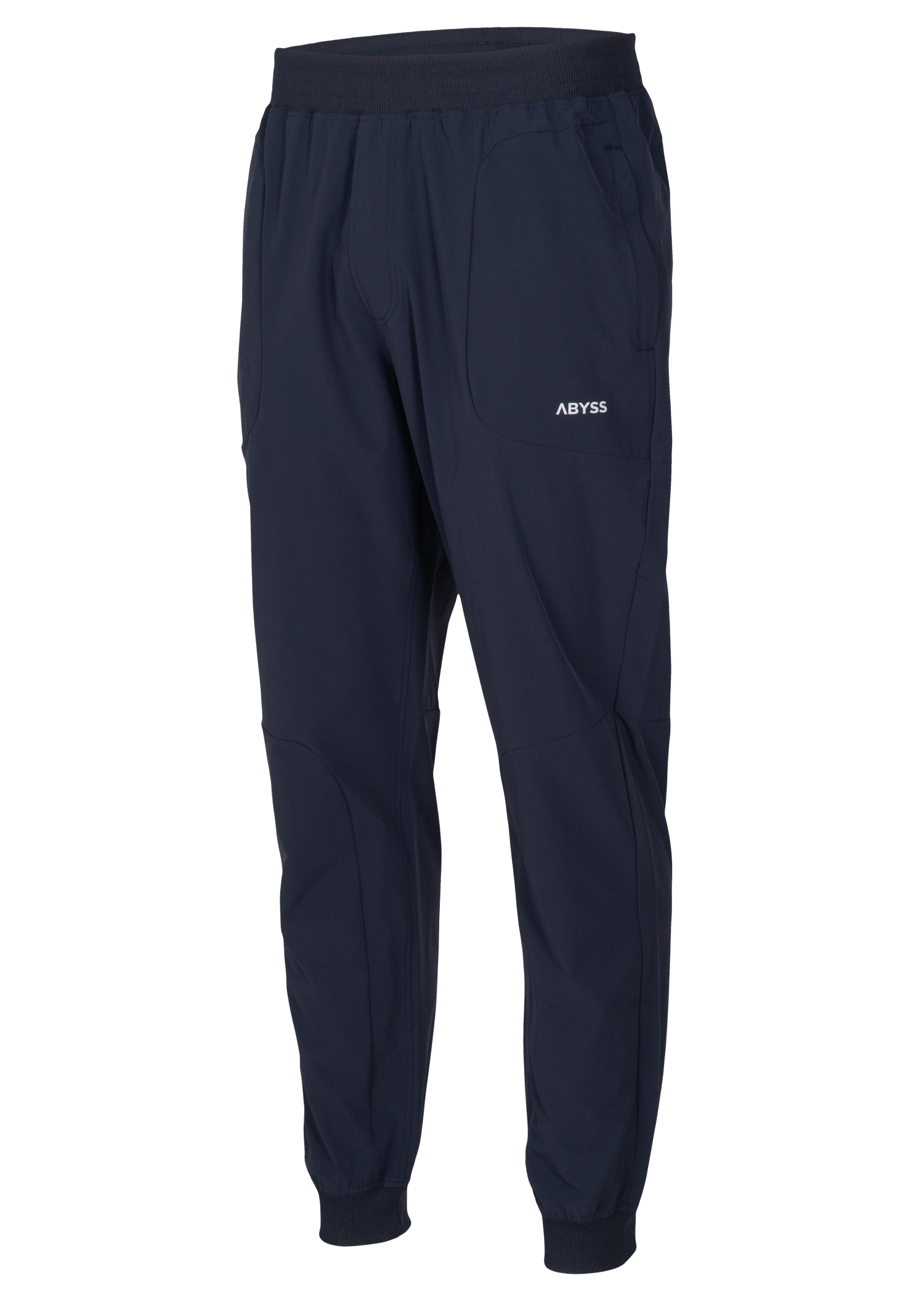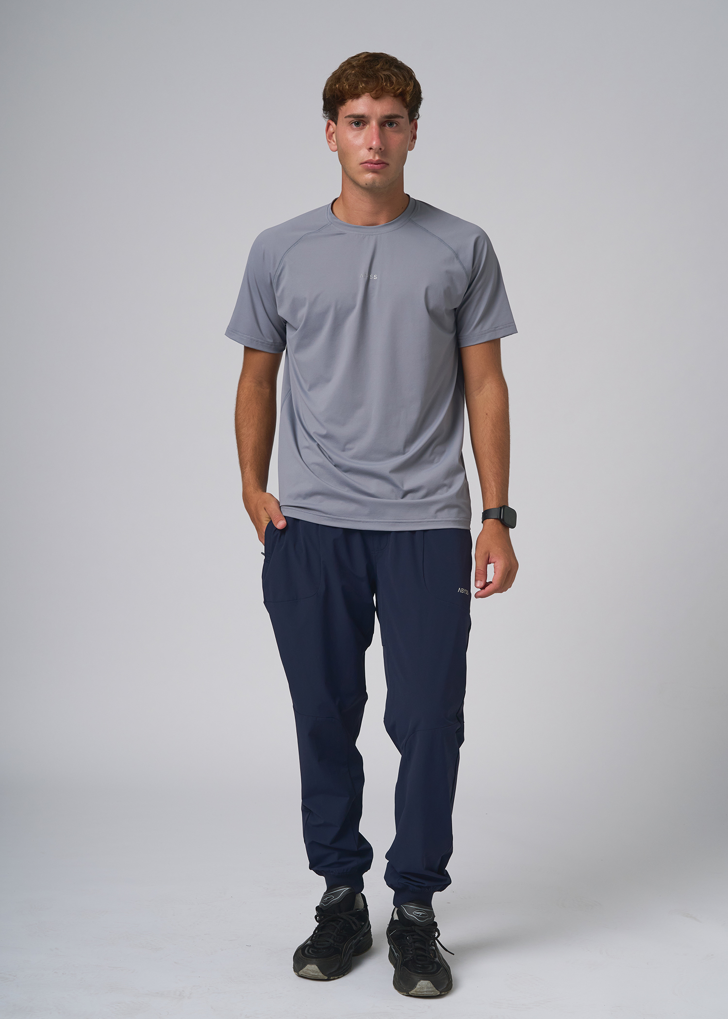 Nylon con spandex. Pantalón con puño en botamanga, bolsillos laterales con cierre y elástico en cintura. Logo termosellado en reflex.