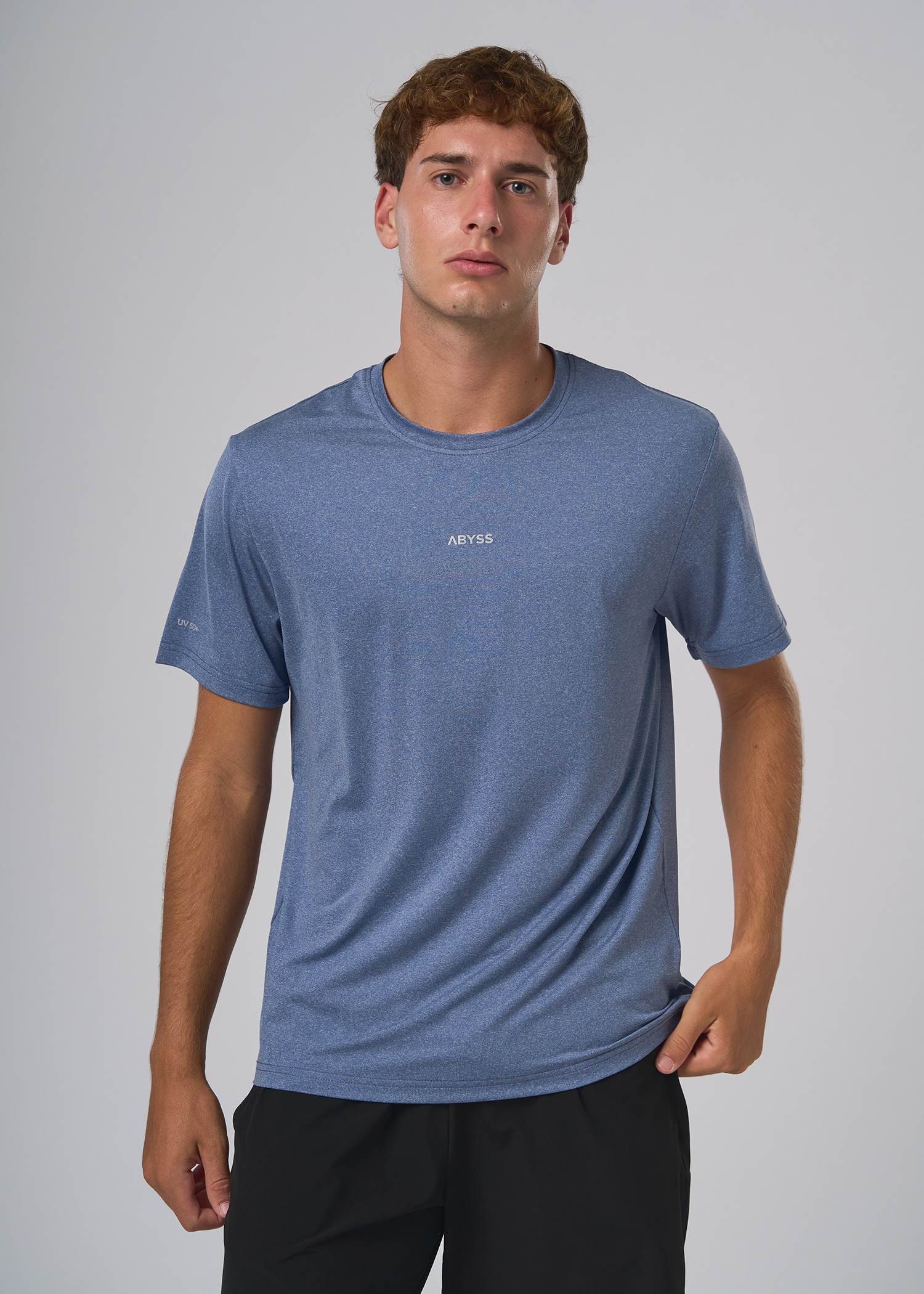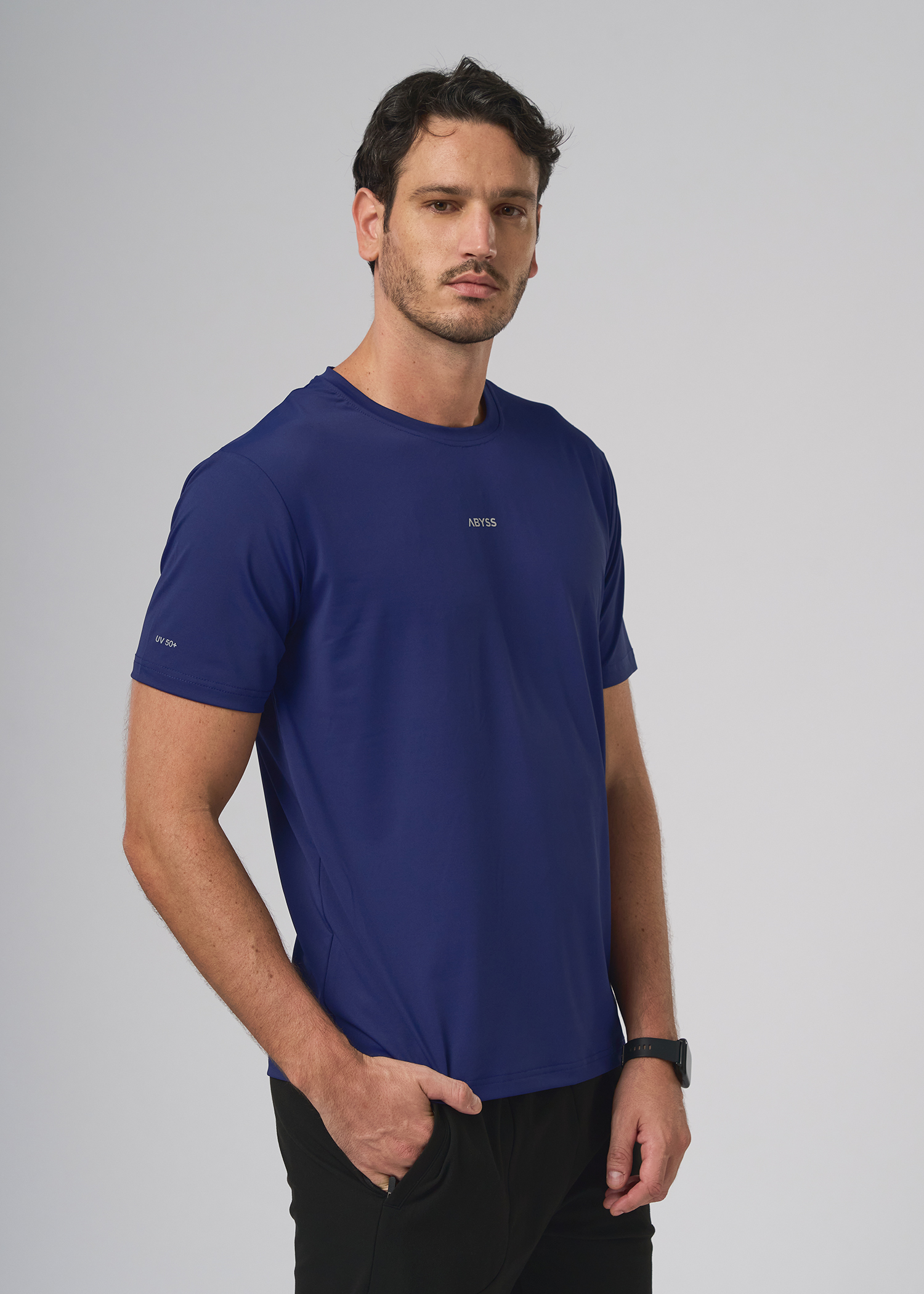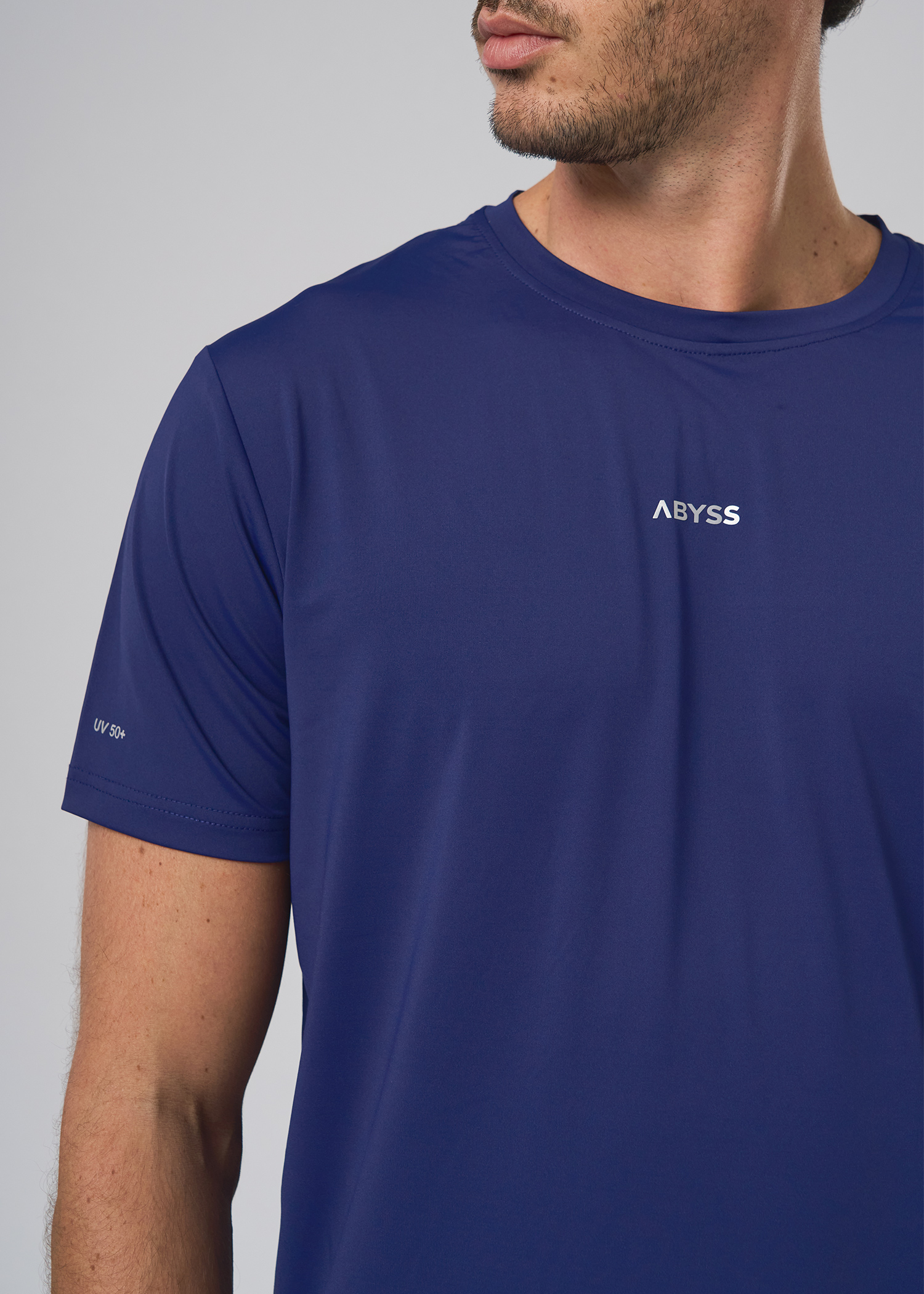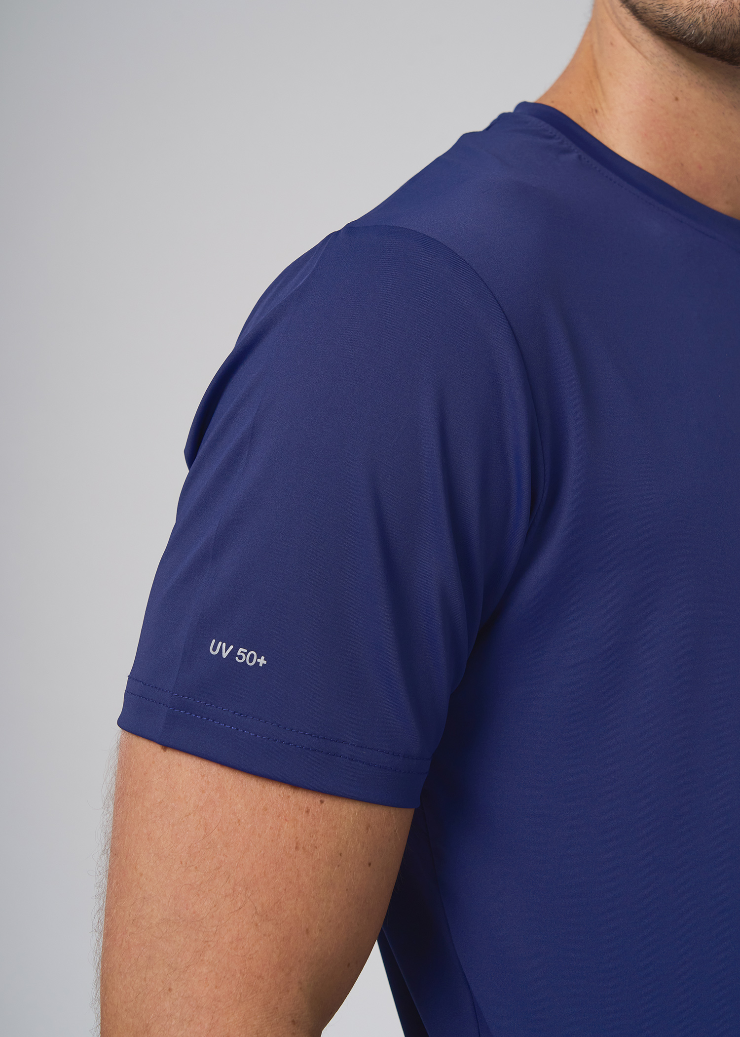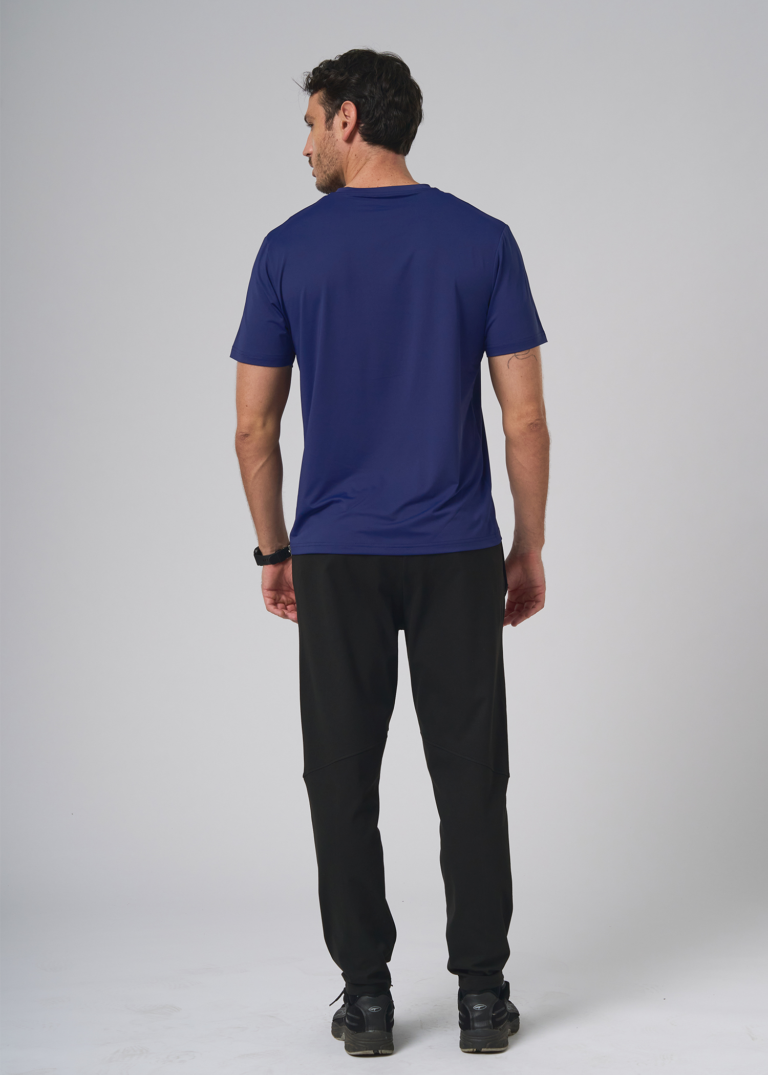 Poliester con spandex. Remera manga corta técnica, manga base con vista interna en cuello al tono. Logos de marca termosellado.