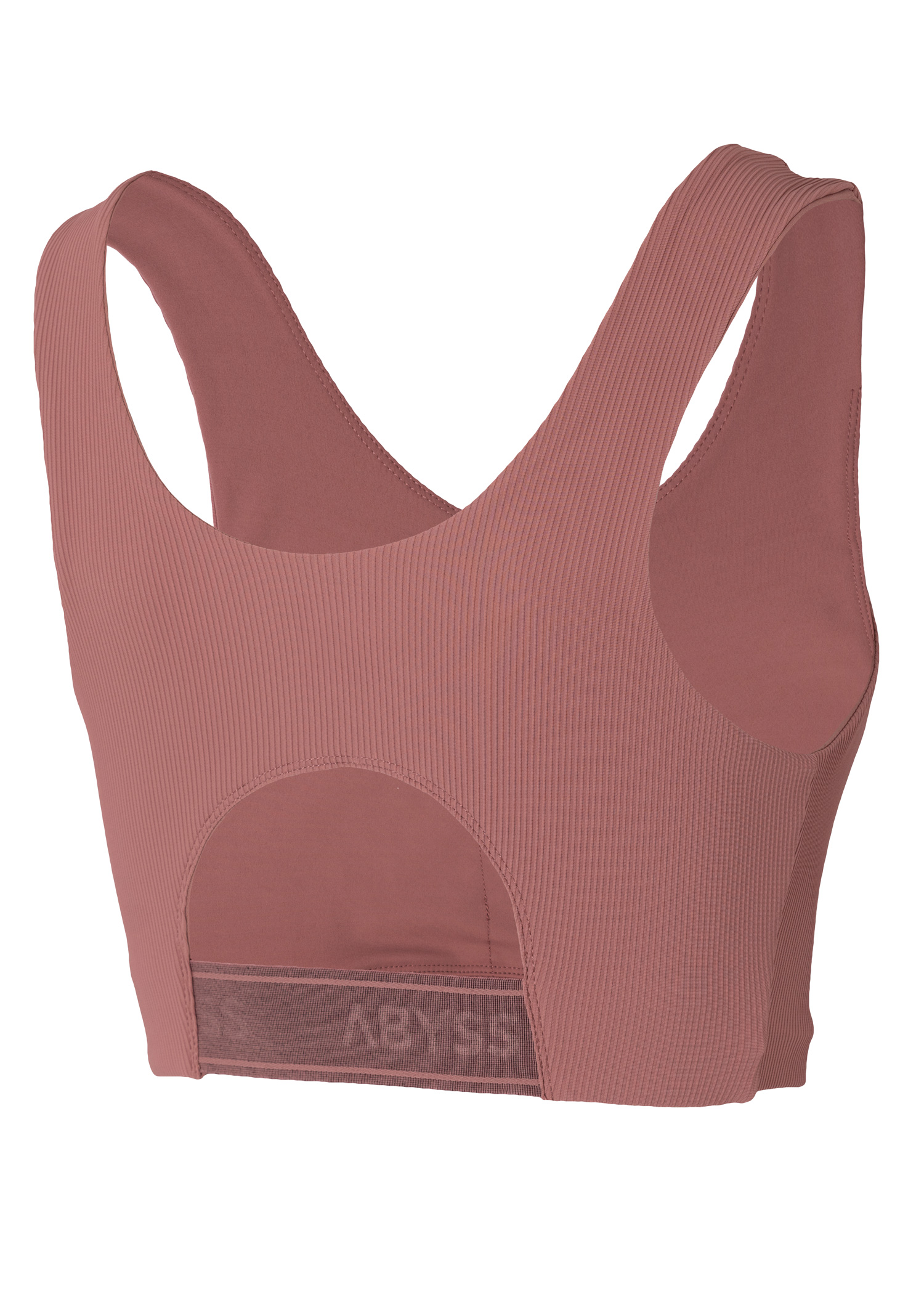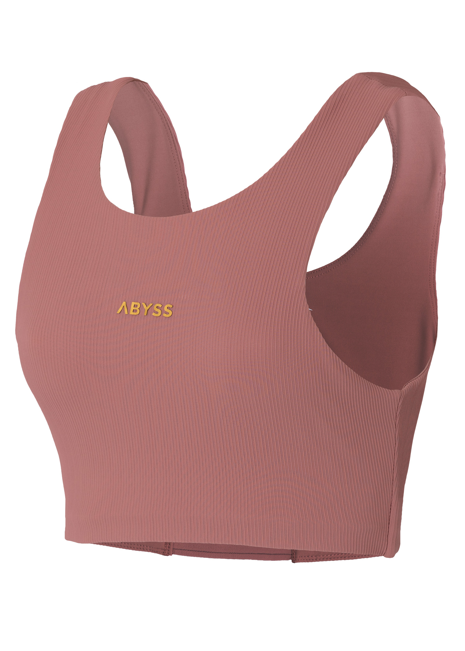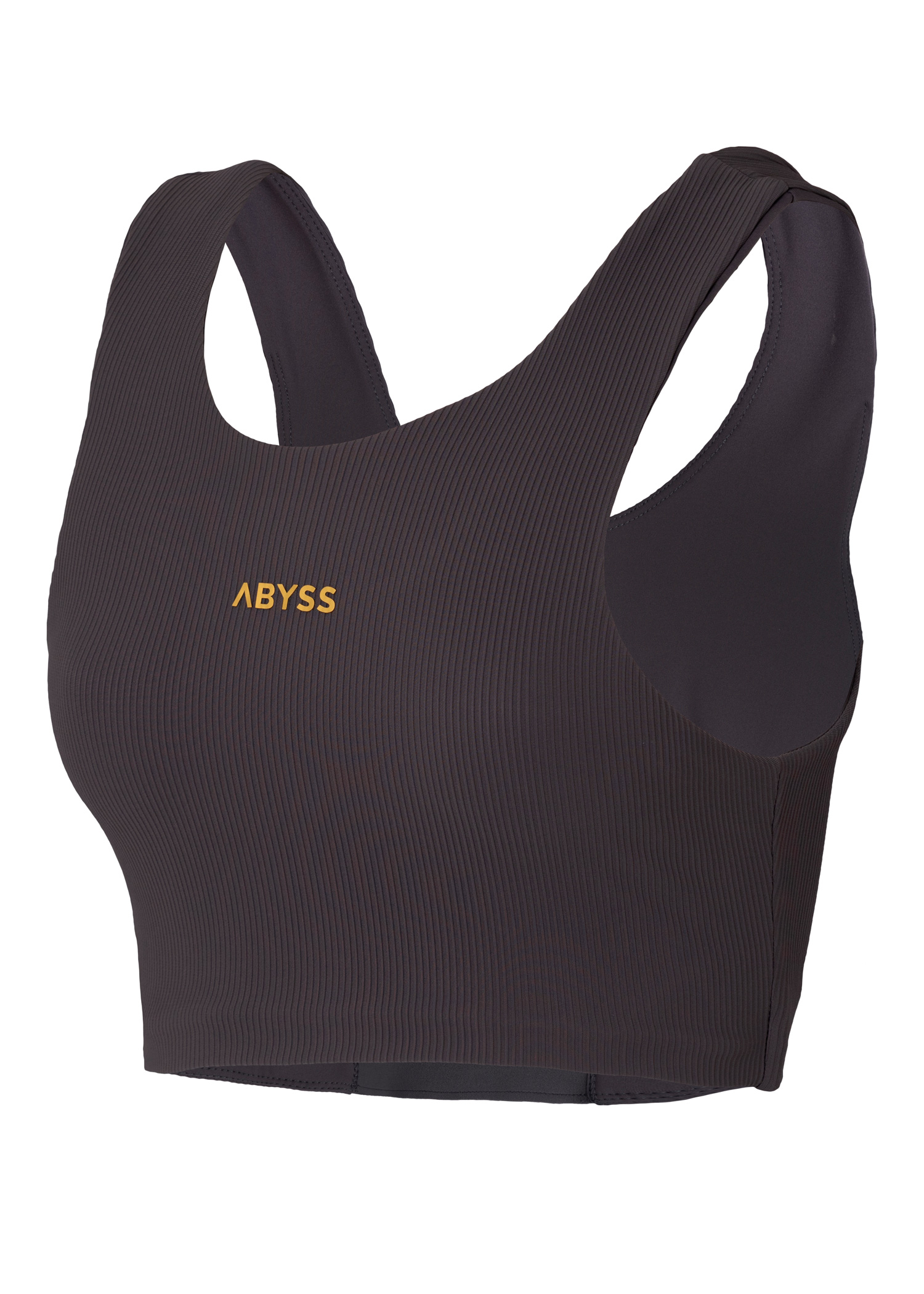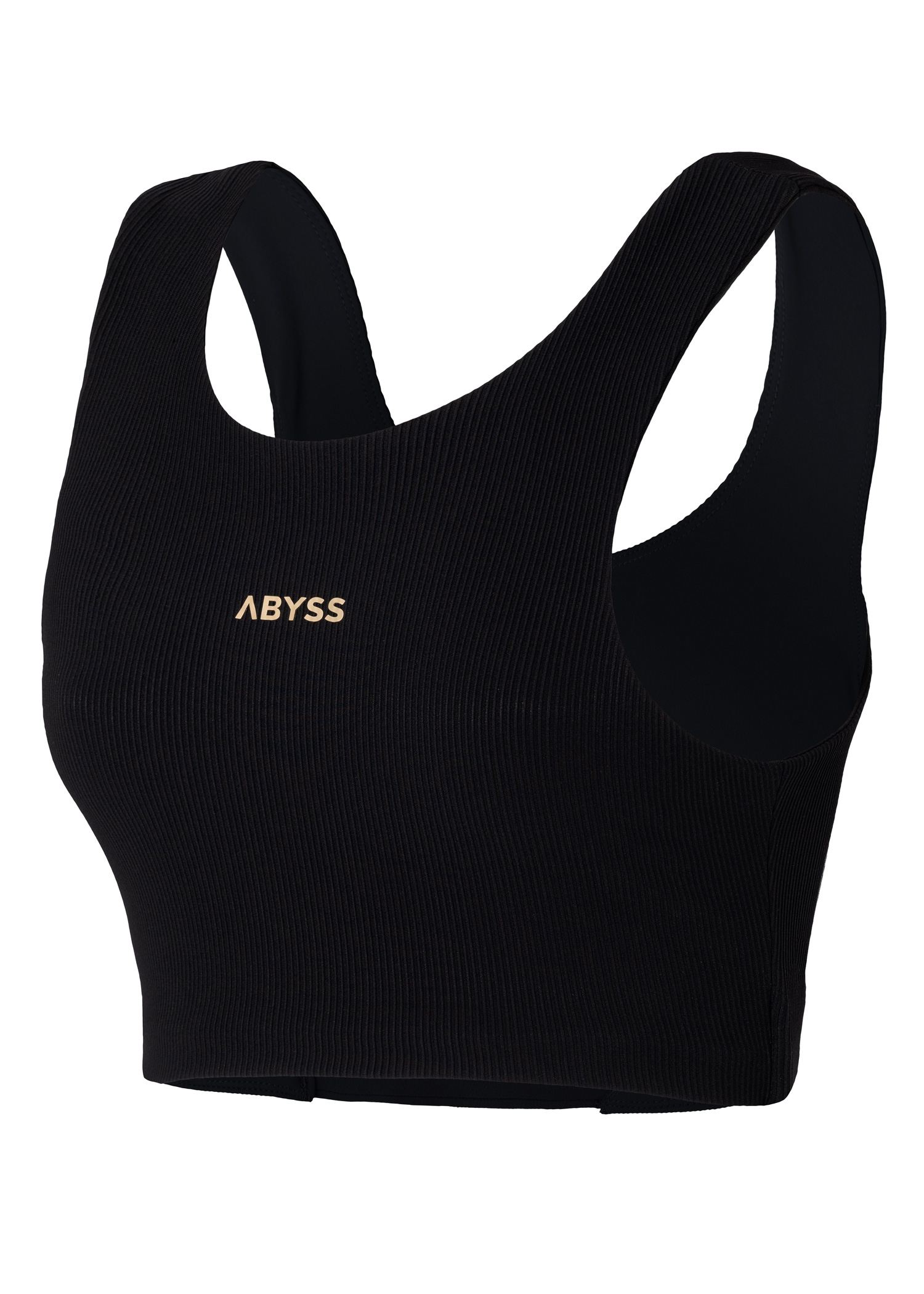Supplex. Top deportivo. Elastico escondido en delantero y trasero con marca de agua en cintura. Breteles anchos y escote alto. Logo termofijado en dorado